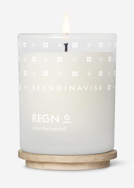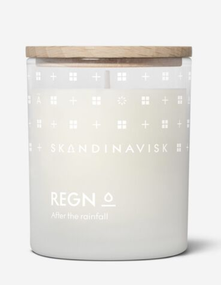 Regn est le mot scandinave qui signifie "pluie". Frais, vert, rajeunissant. Les nuages soudains d'une averse d'été, la bruine grise d'un brouillard d'automne, ce moment précieux où les gouttes cessent de tomber et où la nature respire à nouveau.